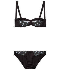 Black Stretch-Silk and Blue Polka Dot Tulle Balconette Bra Lingerie Set  - Regular price