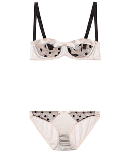 White Stretch-Silk and Black Polka Dot Tulle Balconette Bra with High Waist Briefs Lingerie Set  - Regular price