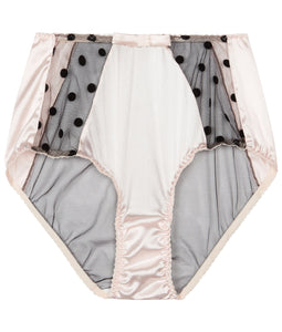 High-Waisted Pink Stretch-Silk with Black Polka Dot Tulle Briefs  - Regular price