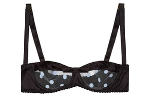 • Black Stretch-Silk with Blue Polka Dot Tulle Balconette Bra