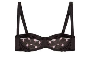 • Black Stretch-Silk with Pink Polka Dot Tulle Balconette Bra