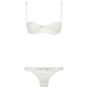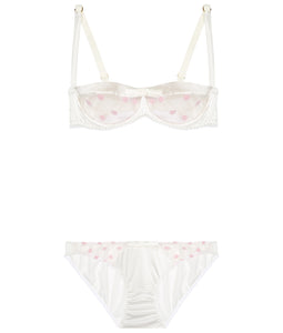 • White Stretch-Silk Polka Dot Tulle Balconette Bra Lingerie Set