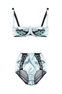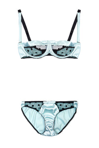 • Mint Stretch-Silk and Black Polka Dot Tulle Balconette Bra with High Waist Briefs Lingerie Set