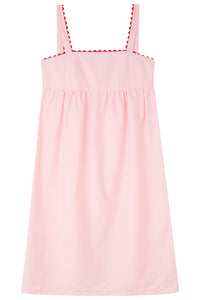 Pale Pink Mini Nightdress with Red Ric Rac - 100% Cotton Poplin  - Regular price