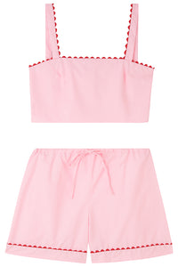 Pale Pink Crop Top and Shorts Matching Set with Red Ric Rac Trim - 100% Cotton Poplin  - Regular price
