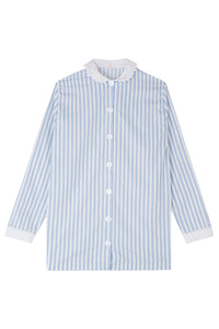 Blue and White Stripe Nightshirt with White Collar and Cuffs - 100% Cotton Poplin  - Regular price