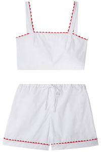 White Crop Top and Shorts Matching Set with Red Ric Rac Trim - 100% Cotton Poplin  - Regular price