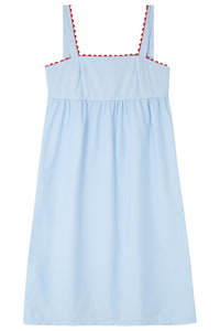 Pale Blue Midi Nightdress with Red Ric Rac - 100% Cotton Poplin  - Regular price
