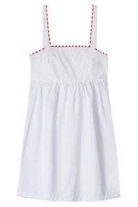 White Mini Nightdress with Red Ric Rac - 100% Cotton Poplin  - Regular price