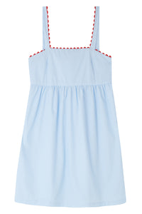 Pale Blue Mini Nightdress with Red Ric Rac - 100% Cotton Poplin  - Regular price