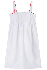 White Midi Nightdress with Red Ric Rac - 100% Cotton Poplin  - Regular price
