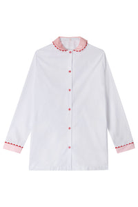 White Nightshirt with Contrasting Pink Collar and Cuffs and Red Ric Rac Trim - 100% Cotton Poplin  - Regular price